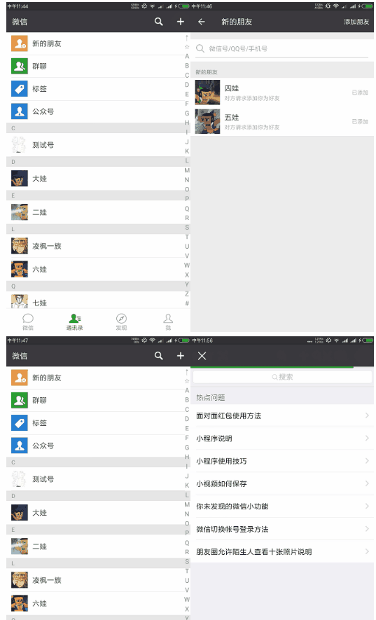 - 好友:查找好友、查找已添加好友、查找未添加好友、添加好友、修改好友昵称、删除好友、拉黑好友