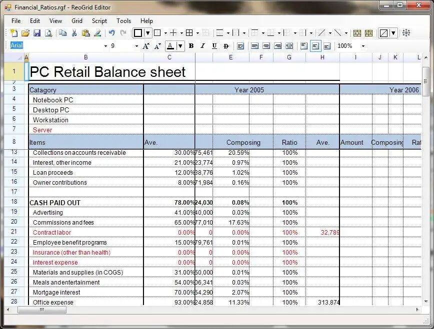 使用方法:1、在NuGet里搜索ReoGrid,点击如下图中项目安装:![]() 2、工具箱新建选项ReoGrid,添加项,把刚才安装的unvell.ReoGrid.dll拖进里得到控件reoGridControl![]() 3、最后将控件放到winform窗体上即可;![]() 4、例子:"Hello world"![]() 下面是一些功能截图Chart![]() Read from Excel![]() Cells Freeze![]() Built-in Cell Types![]() Cell Types and Controls![]() Group and Outline
