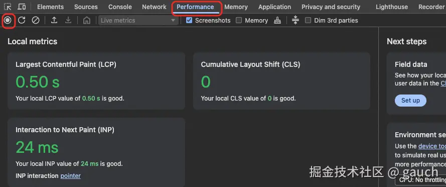 打开开发者工具 → 切换到 Performance(性能) 面板