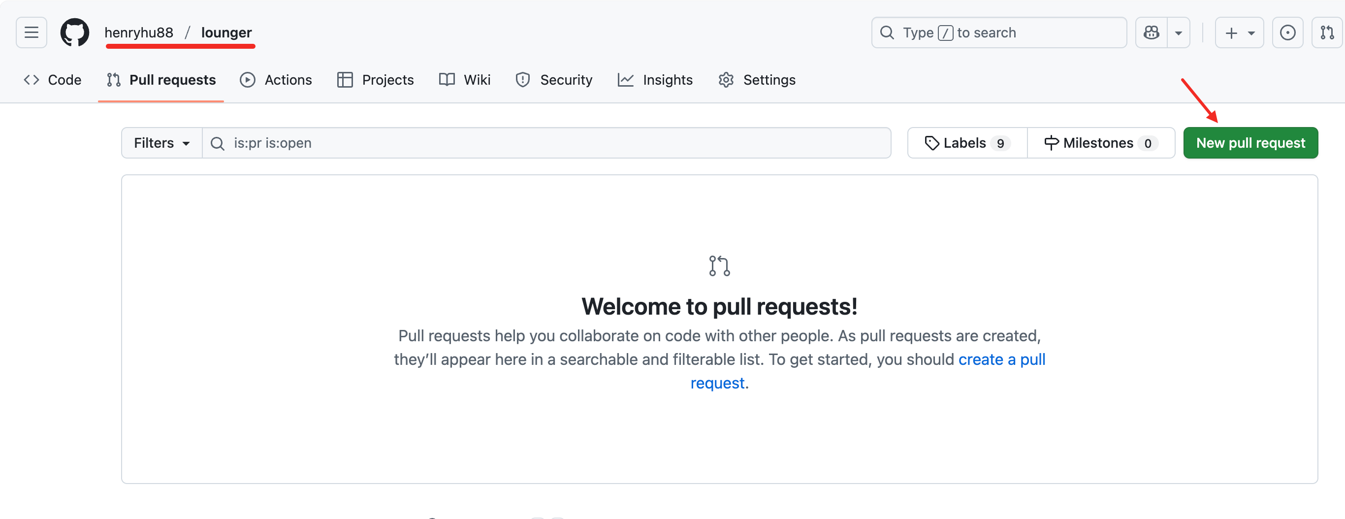 - 点击项目的【Pull requests】提交PR。