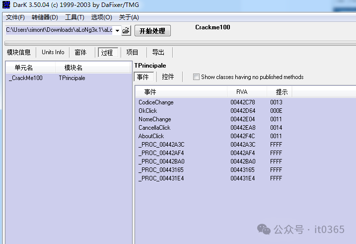 这款工具就是:DarkDe4.exe,它可以直接把Delphi写的软件直接可视化显示出来。(具体工具大家可百度搜索自行下载) 运行DarkDe4
