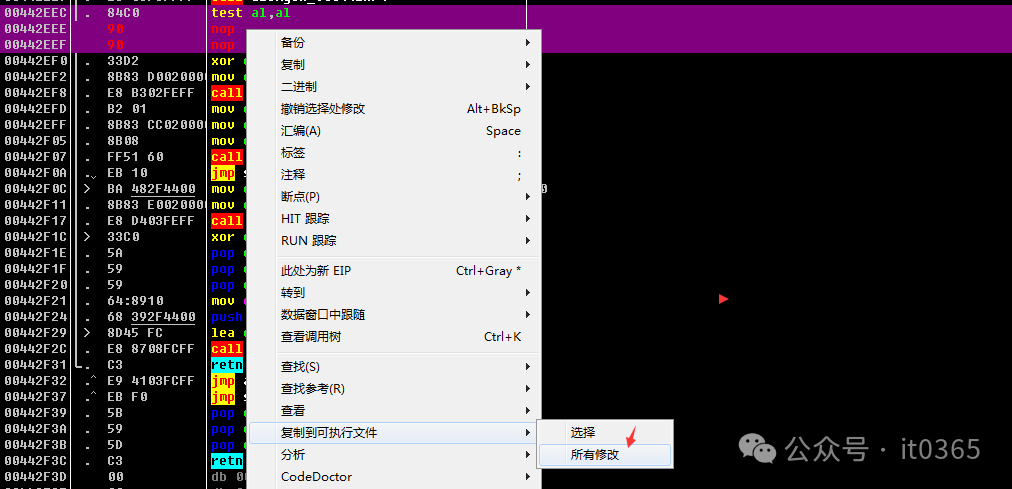 在JE处右键--二进制--NOP填充不让它跳