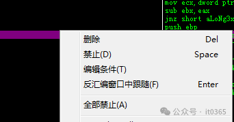 中文软件,具体功能按钮自己点击了解即可。我们直接选择 过程,这里就有很多的事件了。从名字可以看出 如okclick和cancellaclick就可能是软件上的下面的2个按钮了。这里要关注的就是RVA代码,将要分析的软件 aLoNg3x.1.exe拖进OllyDBG 按下ctrl+g把DarkDe4逆向出来的所有RVA地址下断点。此时发现在输入框输入一个字就会断下来。这是我输入注册码断下的位置:
