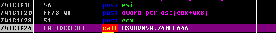00402206   .  8B1D A0414000 mov ebx,dword ptr ds:[<&MSVBVM50.__vbaMidStmtVar>;  MSVBVM50.__vbaMidStmtVar0040220C   .  8D4D CC       lea ecx,dword ptr ss:[ebp-0x34]0040220F   .  51            push ecx00402210   .  604         push 0x400402212   .  8D95 54FFFFFF lea edx,dword ptr ss:[ebp-0xAC]00402218   .  601         push 0x10040221A   .  52            push edx0040221B   .  C785 5CFFFFFF>mov dword ptr ss:[ebp-0xA4],Andréna.00401C34     ;  -00402225   .  C785 54FFFFFF>mov dword ptr ss:[ebp-0xAC],0x80040222F   .  FFD3          call ebx                                         ;  MSVBVM50.__vbaMidStmtVar; <&MSVBVM50.__vbaMidStmtVar>00402231   .  8D45 CC       lea eax,dword ptr ss:[ebp-0x34]00402234   .  8D8D 54FFFFFF lea ecx,dword ptr ss:[ebp-0xAC]0040223A   .  50            push eax0040223B   .  609         push 0x90040223D   .  601         push 0x10040223F   .  51            push ecx00402240   .  C785 5CFFFFFF>mov dword ptr ss:[ebp-0xA4],Andréna.00401C34     ;  -0040224A   .  C785 54FFFFFF>mov dword ptr ss:[ebp-0xAC],0x800402254   .  FFD3          call ebx                                         ;  MSVBVM50.__vbaMidStmtVar