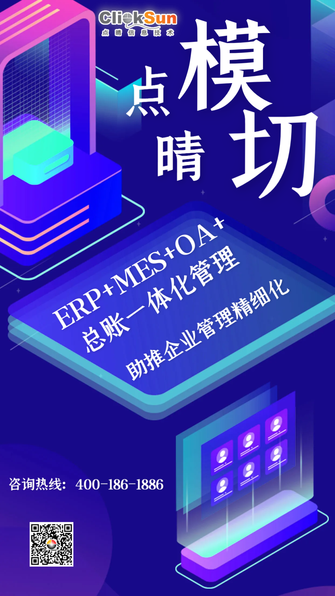 点晴模切ERP系统(http://moqie.clicksun.cn)22年专为模切行业打造,以智能排产、实时追踪、精准成本核算为核心,助力模切企业实现生产精细化管理,让您的生产运营更智能、更透明!