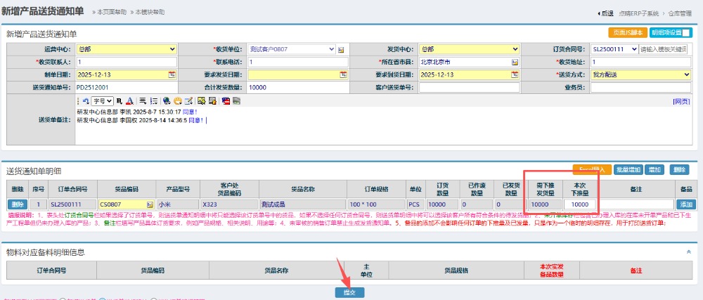 因此销售人员在审核销售订单之后务必要做下推发货通知单。