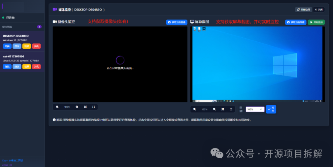 最牛远程桌面开源:跨平台设备集中控制解决方案源代码https://www.gitpp.com/mangge/project0090-device-clay一款基于Python与WebSocket技术栈开发的轻量级远程控制工具,旨在通过浏览器界面实现对多台不同平台的设备进行集中化管理。无论是个人设备远程维护、小型办公网...