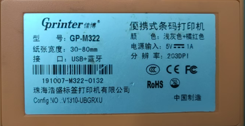 ERP蓝牙打印机型号是什么? 佳博GP-M322 ​参考连接:打印机型号