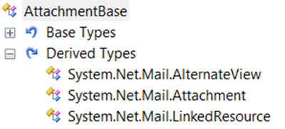 在HTML中引用资源使用cid:xxx,xxx是附件的ContentId属性。同时也可以在MailMessage中的AlternateViews中加入AlternateView来指定电子邮件内容的不同格式。通过AlternativeView的LinkedResources来加入引用文件。引用也是通过LinkedResource的ContentId来设置的。事实上这个ContentId属性是来自AttachmentBase类型,而Attachment,AlternateView和LinkedResource类型都继承与这个类: