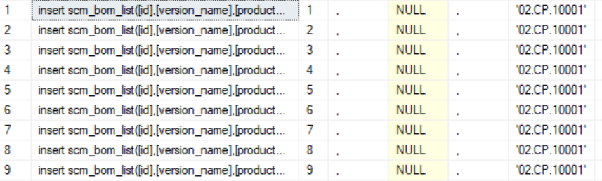 代码如下图: exec Proc_Generateinsert @tablename='scm_bom_list',@filter='',@Order=''