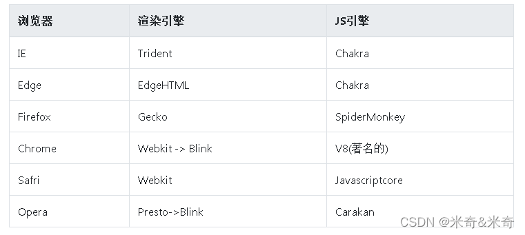 渲染引擎(有叫内核,负责HTML解析、页面渲染)
