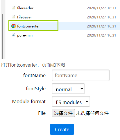 选择需要的字体的ttf文件,点击选择文件进行上传转换(一些字体可以在电脑本地找到地址:C:\Windows\Fonts)