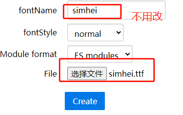 在页面引入字体:require("@/utils/simhei-normal"); 字体转为js的时候都处理好了,只需要引入就可以直接使用了