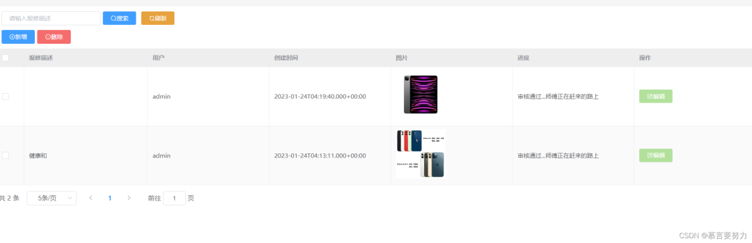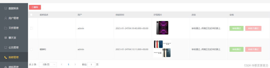 其实审核功能最主要的就是我们的新增功能,用户只有新增过后,我们的管理员才能去对你的申请进行审核,最后实现效果。