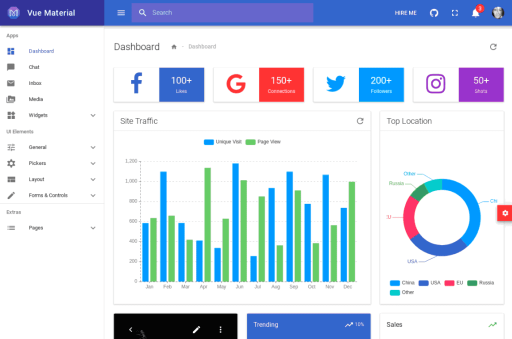 Vuetify 根据材料设计规范提供了大量的精制组件(80+)。Vuetify 结合了 Vue.js 和 Material 的所有优点。该框架与 RTL 和 Vue CLI-3 兼容。Vuetify 的所有组件都有很好的文档,也有清晰的示例。它可以用于 Vue 的服务器端渲染(SSR)。Vuetify 支持所有现代的 Web 浏览器,甚至包括 IE11 和 Safari 9+(带有 polyfill)。它还带有现成的项目支架,你可以通过一个命令开始构建 Vue.js 应用。