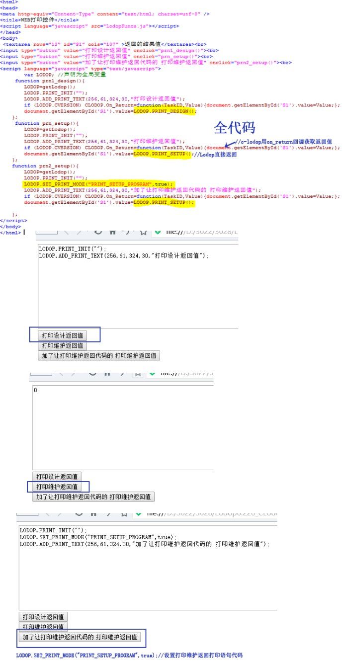 Lodop控件设置WEB页面打印维护返回打印状态语句代码