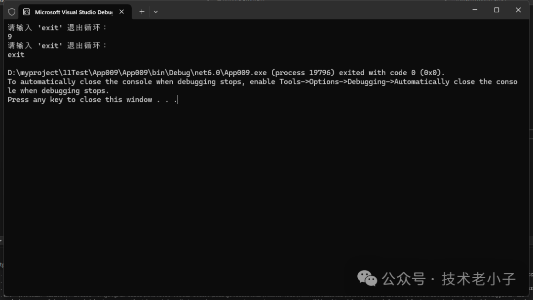 Console.WriteLine("请输入 'exit' 退出循环:");