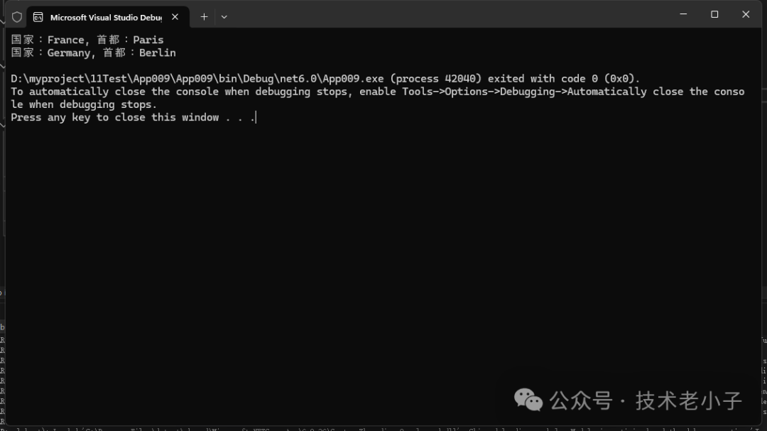 Console.WriteLine("国家:" + item.Key + ", 首都:" + item.Value);