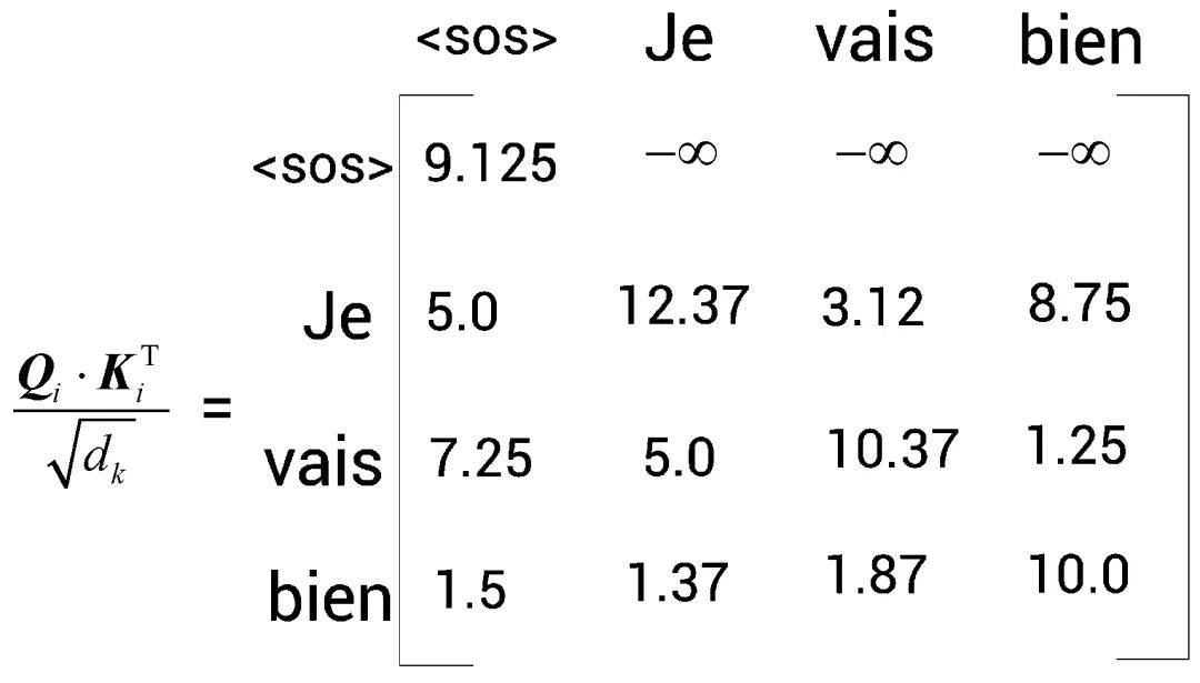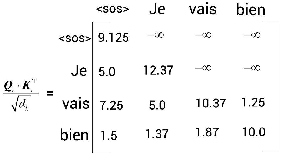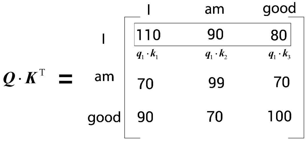 图 1-55 显示了查询矩阵与键矩阵的点积结果。