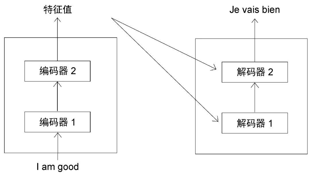 编码器到底是如何工作的呢?它又是如何提取出原句(输入句)的特征的呢?要进一步理解,我们可以将编码器再次分解。图 1-4 展示了编码器的组成部分。