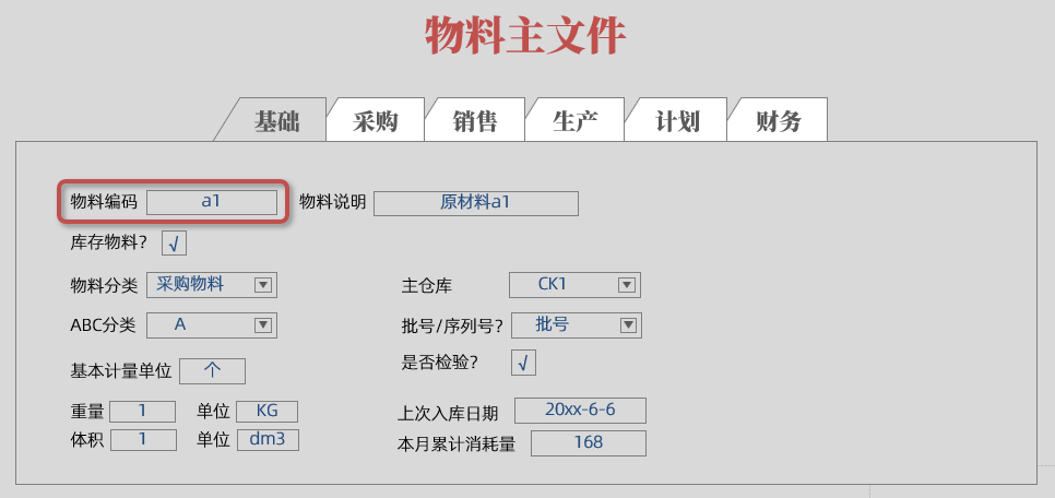 因为在ERP环境下有一个很大的优势,就是可以给每种物料维护一份物料主文件。