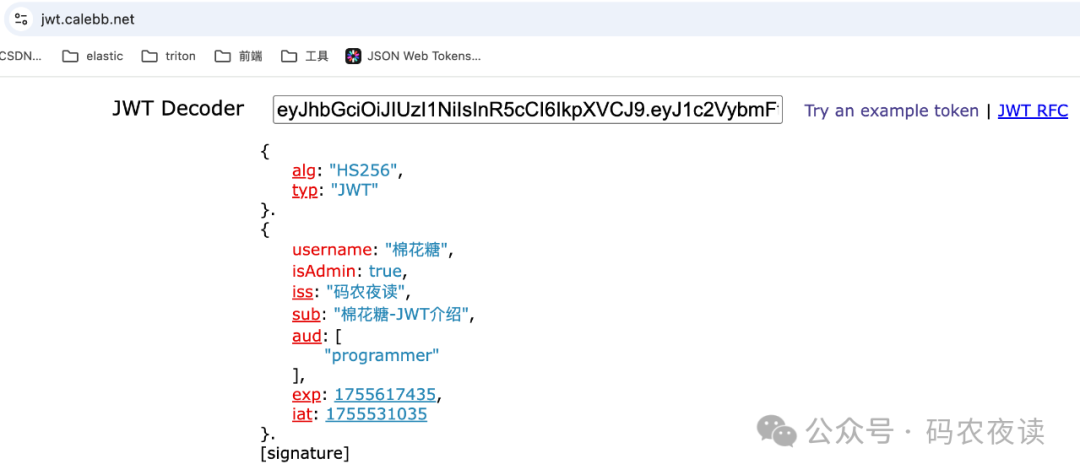 我们可以通过claims字段获取到生成jwt的具体内容:如果你需要校验用户id是否合法,那么就可以在生成jwt时,将用户id放入claims字段中,在解析时就可以拿到。通常,jwt的有效性校验都是放在服务中间件中,所有请求都会对jwt进行验证,以此来保证数据传输的安全。