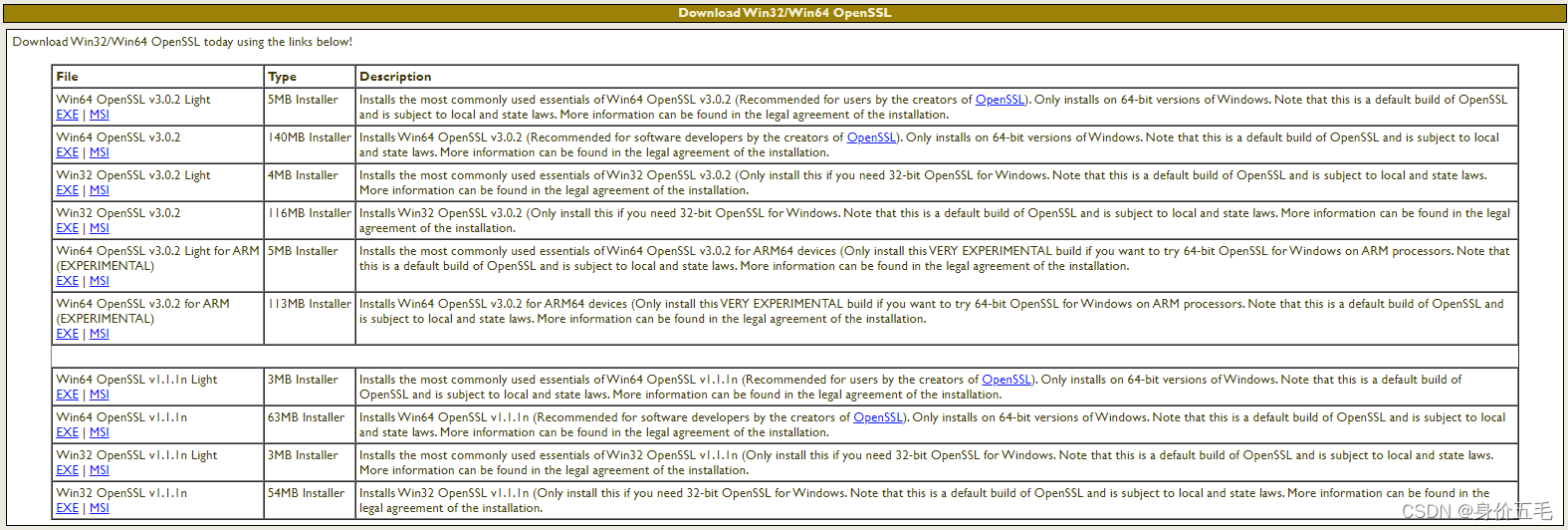 前往网站下载:Win32/Win64 OpenSSL Installer for Windows - Shining Light Productions