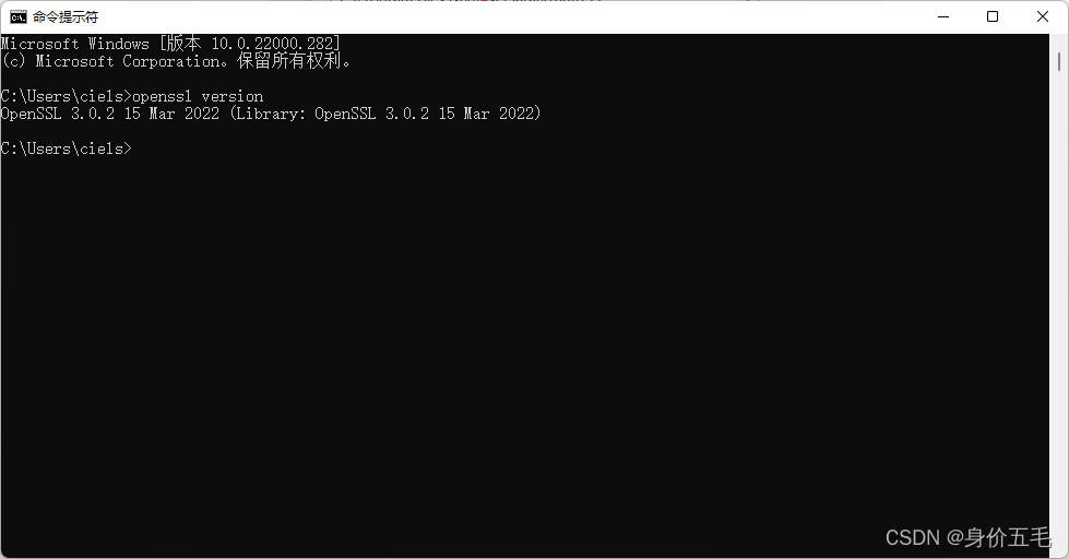 点击确定后关闭,在命令行中输入 openssl version 查看是否可用。