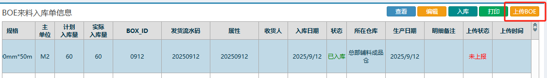 7.查询到对应订单之后,按图操作:先进行入库,上传BOE
