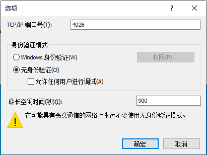 然后,在菜单栏-工具-选项,选择无身份验证(测试环境方便)或配置 Windows 身份验证。