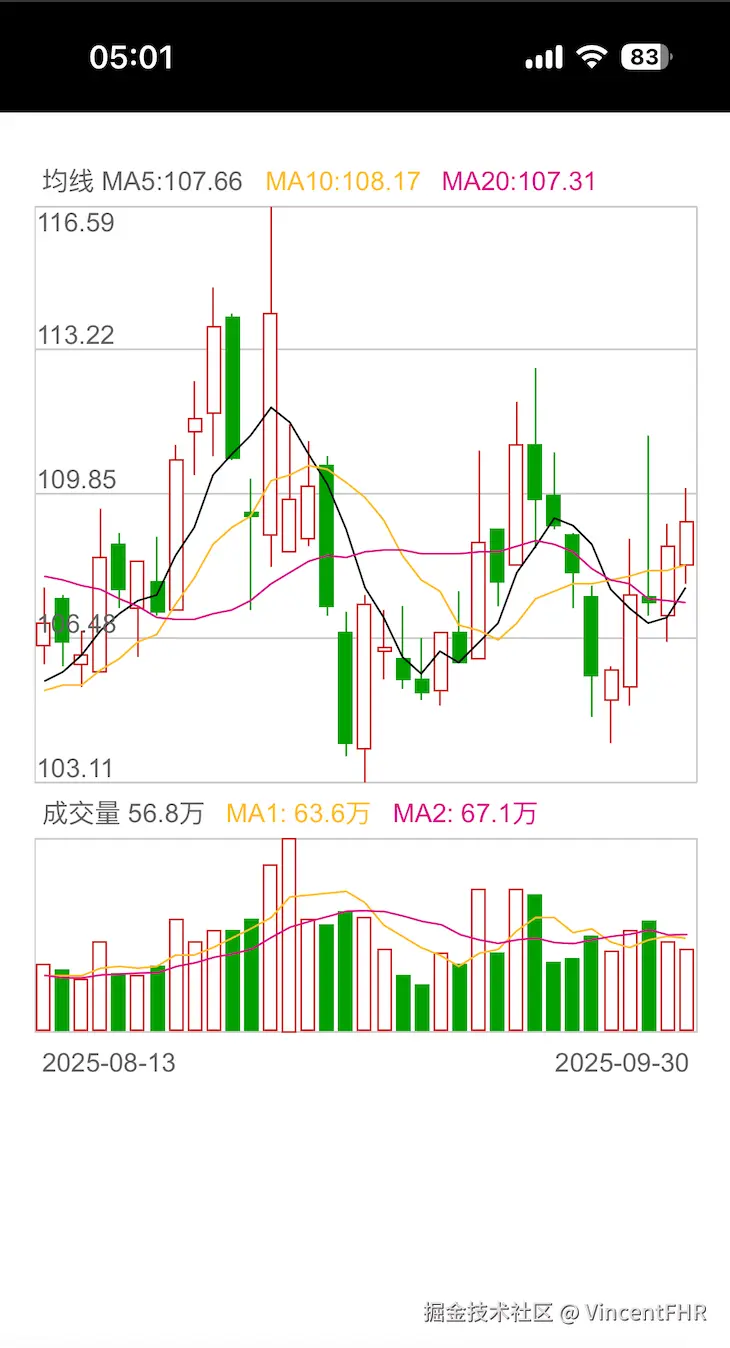 根据上面的GIF动图, 可以知道, 本次做的移动端 K 线图, 最重要的两个交互是: