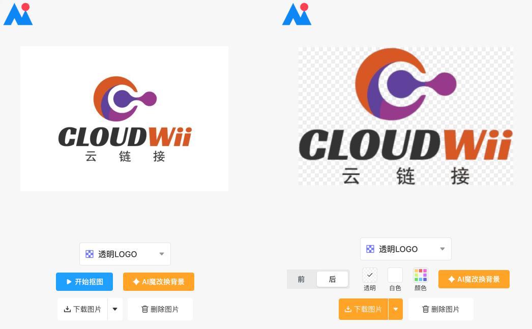 如果你只有一张普通的Logo图片,一般情况下只需要生成一张png格式的透明背景Logo即可编辑使用,这里给大家分享一下我最近常用的在线图片编辑软件AI改图神器,里面有超多实用的图片处理功能,比如透明背景Logo生成器(https://img.logosc.cn/transparent-logo),上传Logo图片后点击【开始抠图】即可一键转换,免费好使!