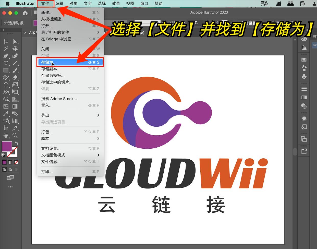 下载安装好Ai后,我们可以将之前转换好的SVG格式文件导入进去,在顶部菜单栏中找到【文件】并选择【存储为】,在导出格式中选择你需要的格式并存储,就完成转换了!