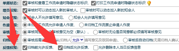 归档后,只要勾选了归档后允许反馈,能浏览该工作流申请的人都可以反馈。