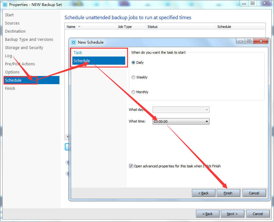 设置自动备份时间,如果本电脑长期不关机,那么可以设置为凌晨3点;如果本电脑晚上会关机,那么应该设置为12:30中午休息的时候,以避免备份干扰电脑正常使用,如下图